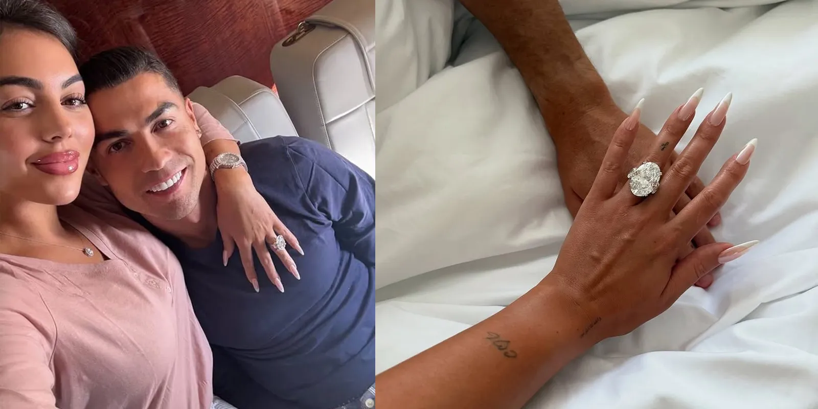 In August 2025, Georgina Rodríguez confirmed her engagement to Cristiano Ronaldo and gave us a peek at a truly striking ring: an oval-cut diamond weighing between 25–30 carats, set in a three-stone design with two oval accent stones.Luxury in full view: