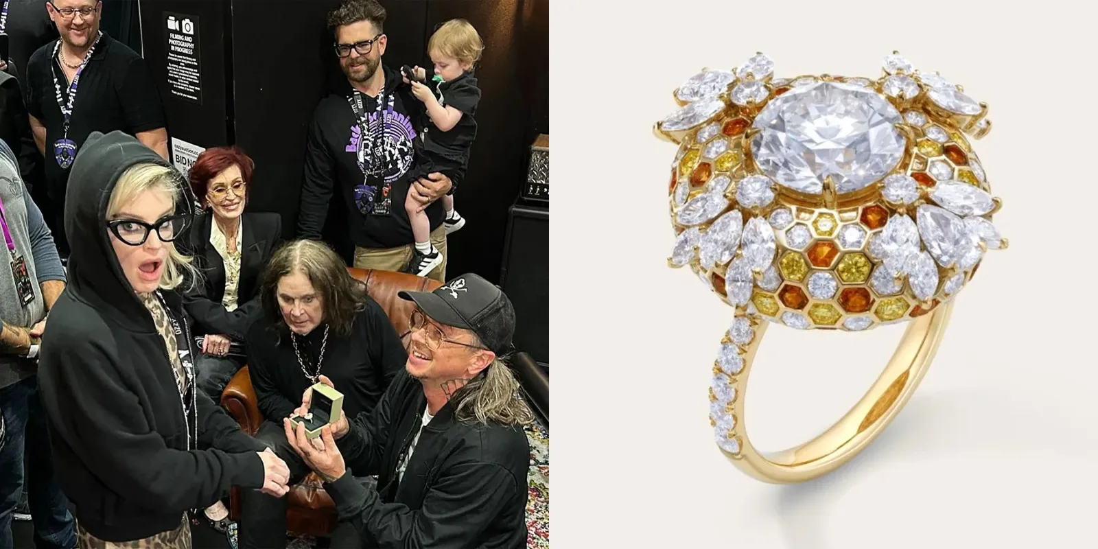 Kelly Osbourne’s engagement to Sid Wilson in July 2025 brought a ring that is decidedly bespoke: a custom diamond ring from Mouawad inspired by a honeycomb and bumblebee motif, a personal symbol of the couple.