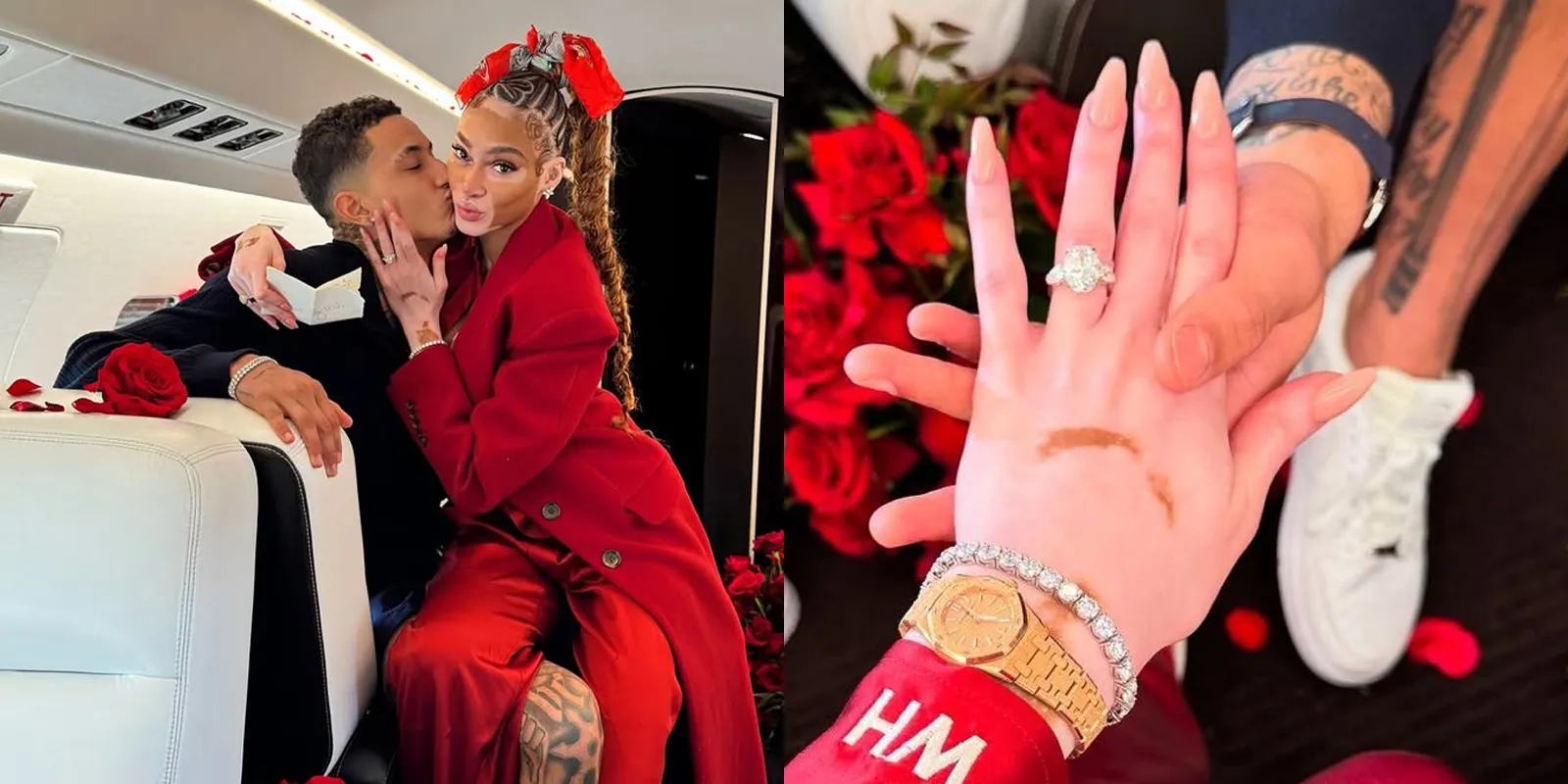 In February 2025, Kyle Kuzma proposed to Winnie Harlow with an 8.5-carat natural diamond featuring an oval centre stone flanked by two side stones.Why this ring is instructive: