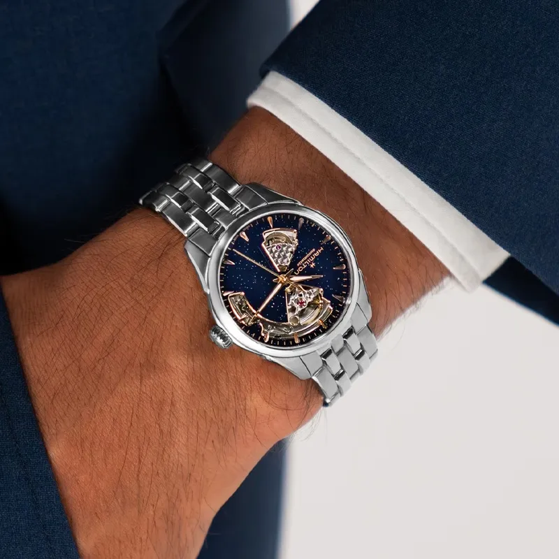 For a dressier, feminine option, the Open Heart Lady with a midnight blue aventurine dial evokes the evening sky. The partial open-heart reveals the beating movement beneath, injecting technical interest into an elegant frame.Key specs & notes: