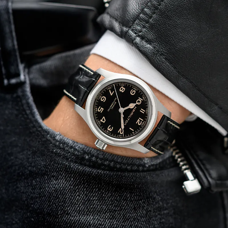 - Hamilton’s H-10 automatic movement (80 h power reserve)