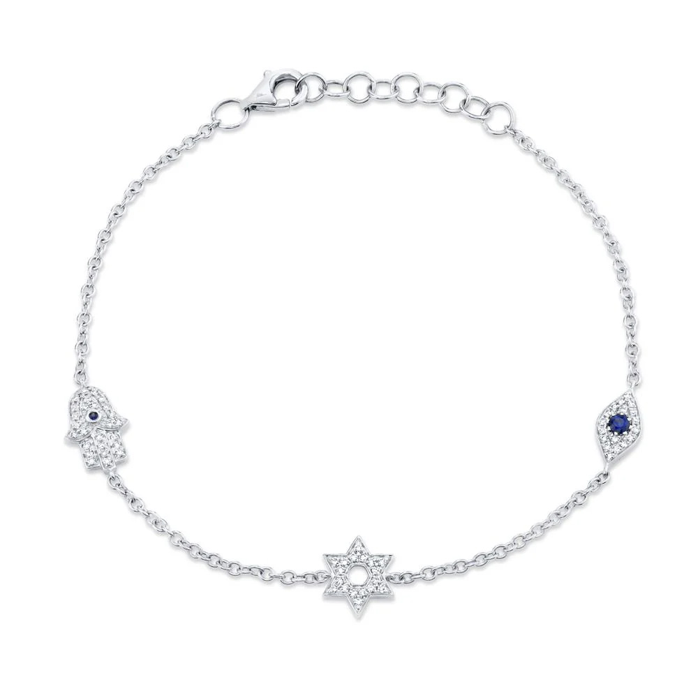 0.21tw Shy Creation Kate Diamonds & Sapphire Hamsa Star Eye Bracelet