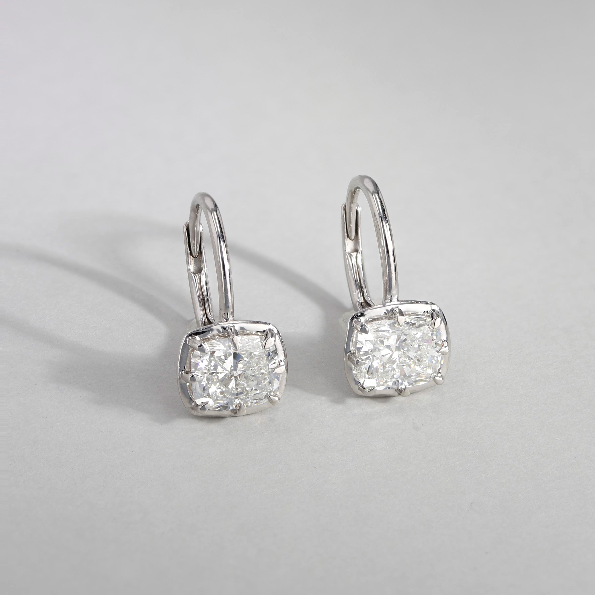 1.86tw Cushion Shaped Diamond French Drop Earrings