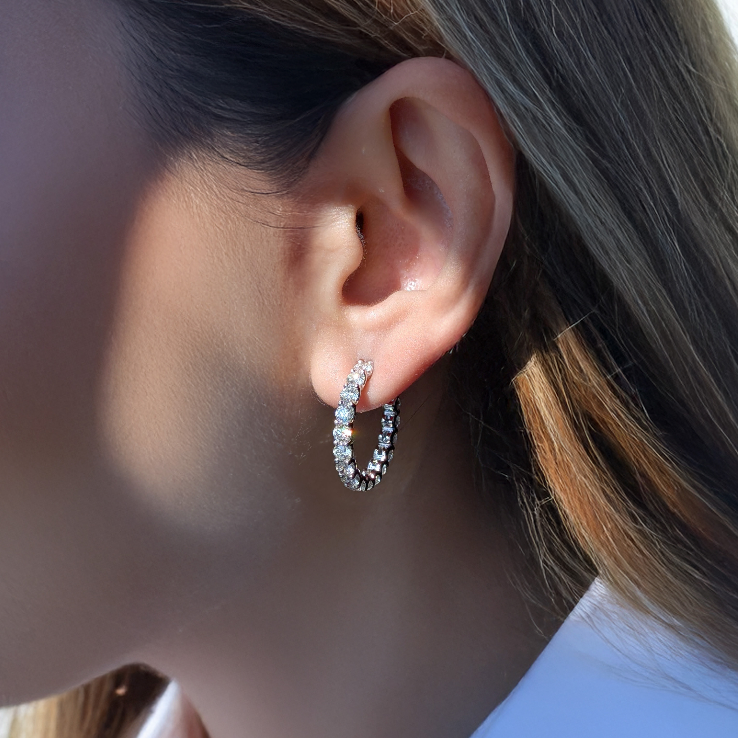 5.00tw Round Diamonds In-Out Eternity Hoop Stud Earrings