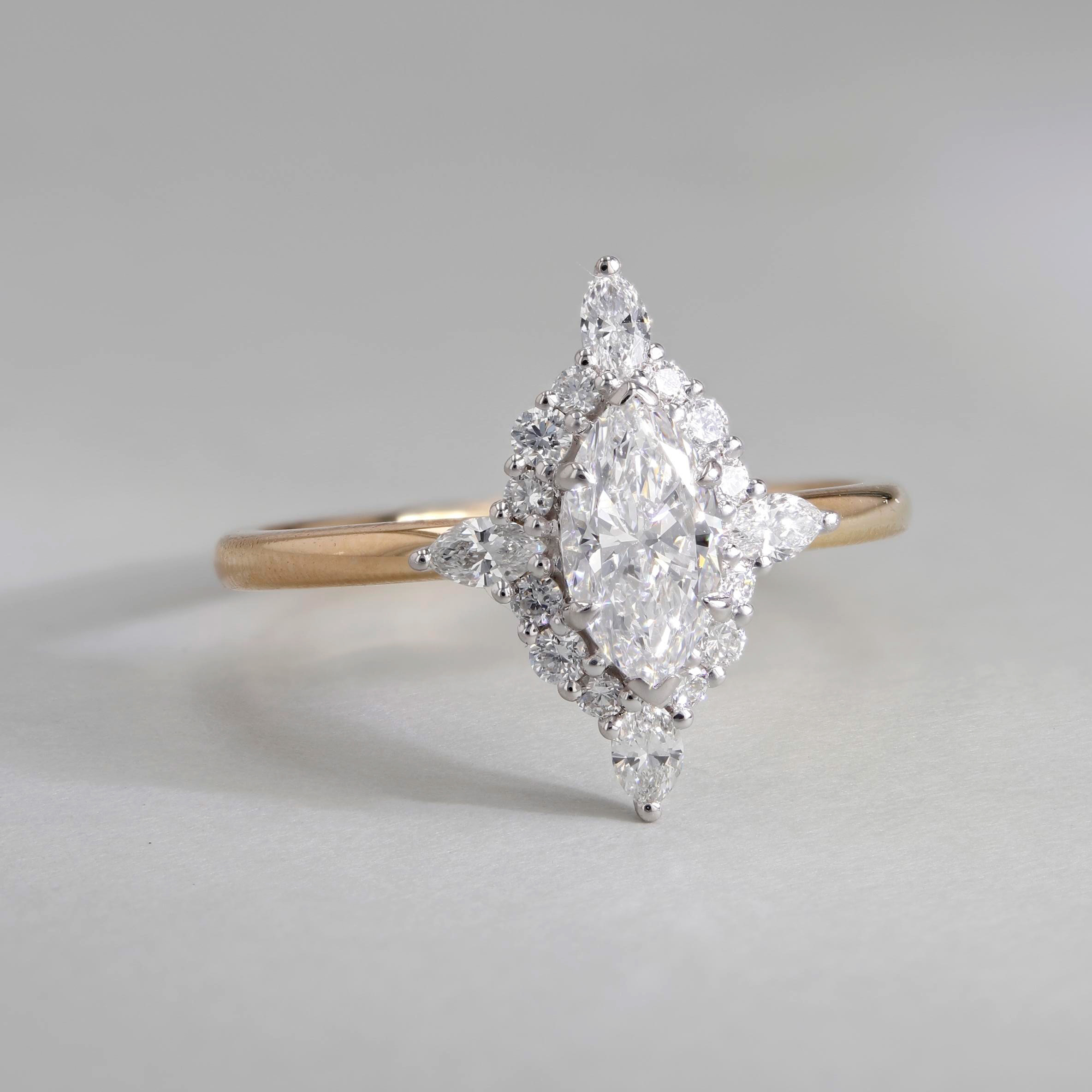 1.03tw Camellia Marquise Diamond Halo Engagement Ring