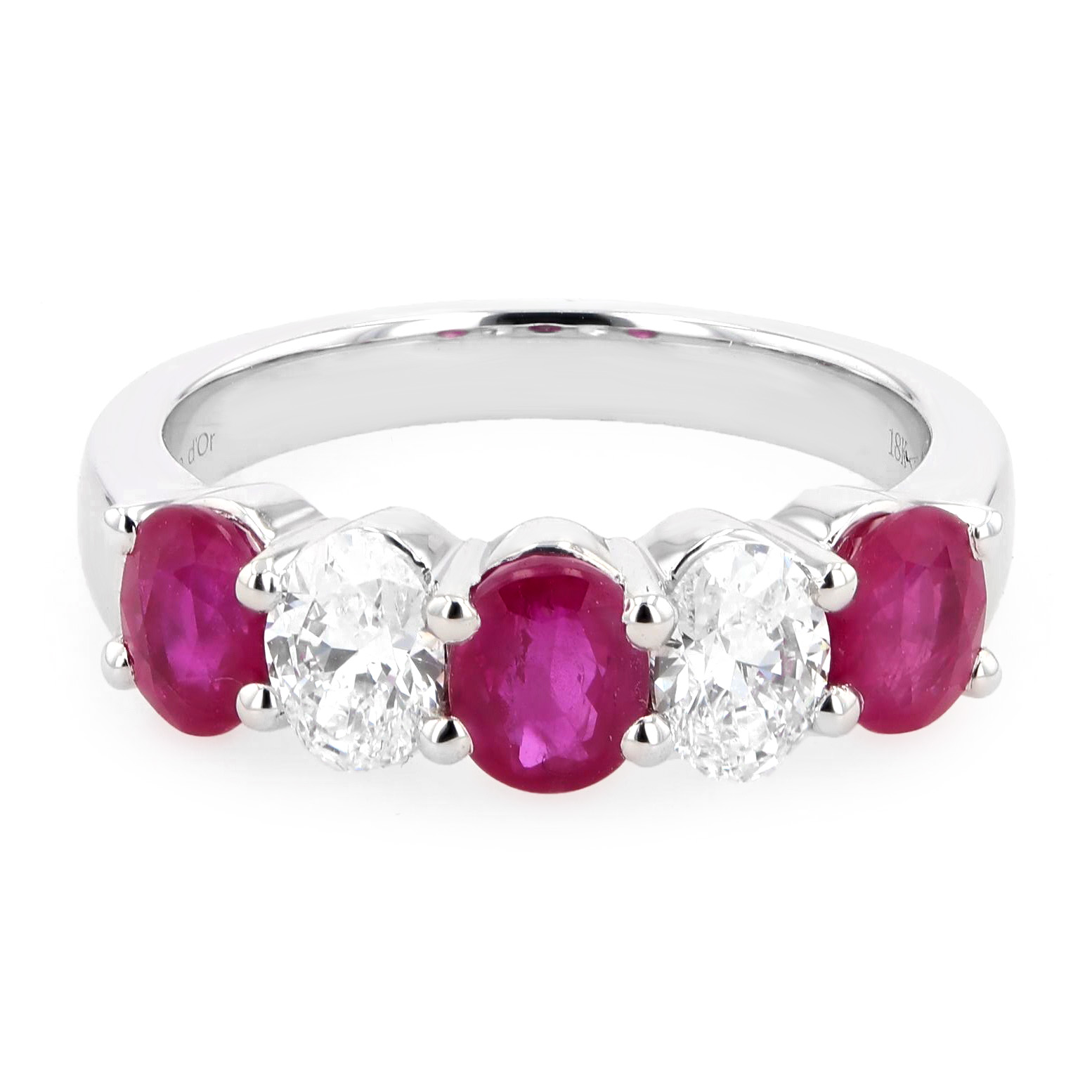 2.80tw Oval Ruby and Diamond 5 Stone Band
