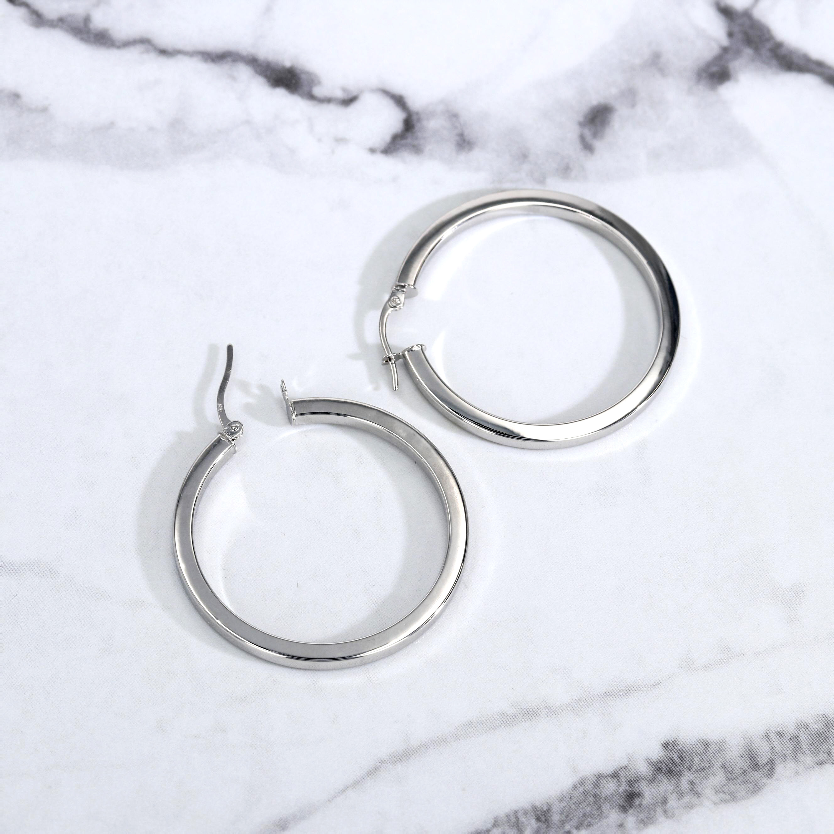 10kt White Gold Large Flat Hoop Earrings