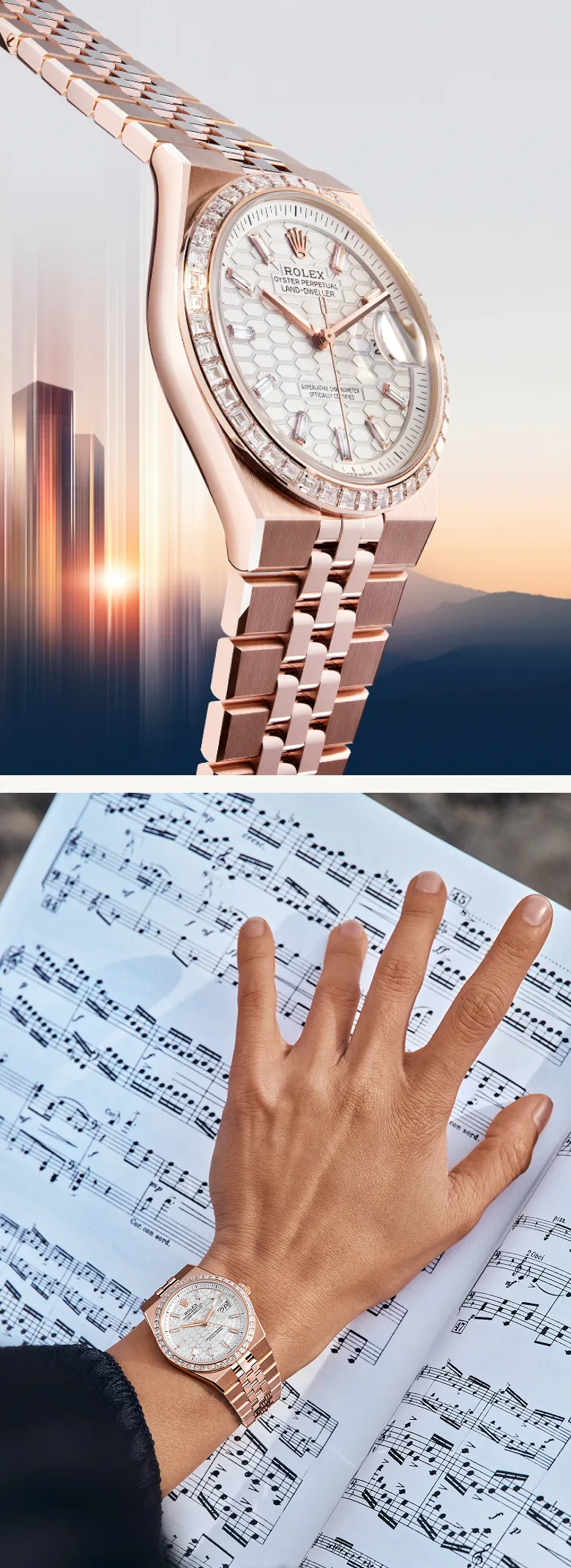 Like all Rolex watches, the Oyster Perpetual Land-Dweller 36 and the Oyster Perpetual Land-Dweller 40 are covered by the Superlative Chronometer certification redefined by Rolex in 2015. This designation testifies that every watch leaving the brand’s workshops has successfully undergone a series of tests conducted by Rolex in its own laboratories according to its own criteria, following the official certification of the movements by the Swiss Official Chronometer Testing Institute (COSC). These in-house certification tests apply to the fully assembled watch, after casing the movement, guaranteeing superlative performance on the wrist in terms of precision, power reserve, waterproofness and self-winding. The precision of a Rolex Superlative Chronometer is of the order of −2/+2 seconds per day – the rate deviation tolerated by the brand for a finished watch is significantly smaller than that accepted by COSC for official certification of the movement alone.